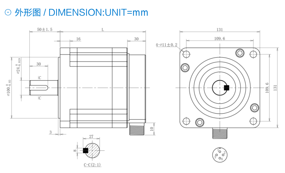 三相步進(jìn)電機(jī)-130外形圖